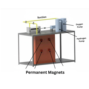 Our solution revolutionizes the process by integrating permanent magnets directly into the electrolyzer. This patented electromagnetic approach enhances the flow of electrons, significantly improving the efficiency of splitting water into hydrogen and oxygen. This drastically reduces the requirement for electrical energy, directly addressing the primary challenge of conventional methods